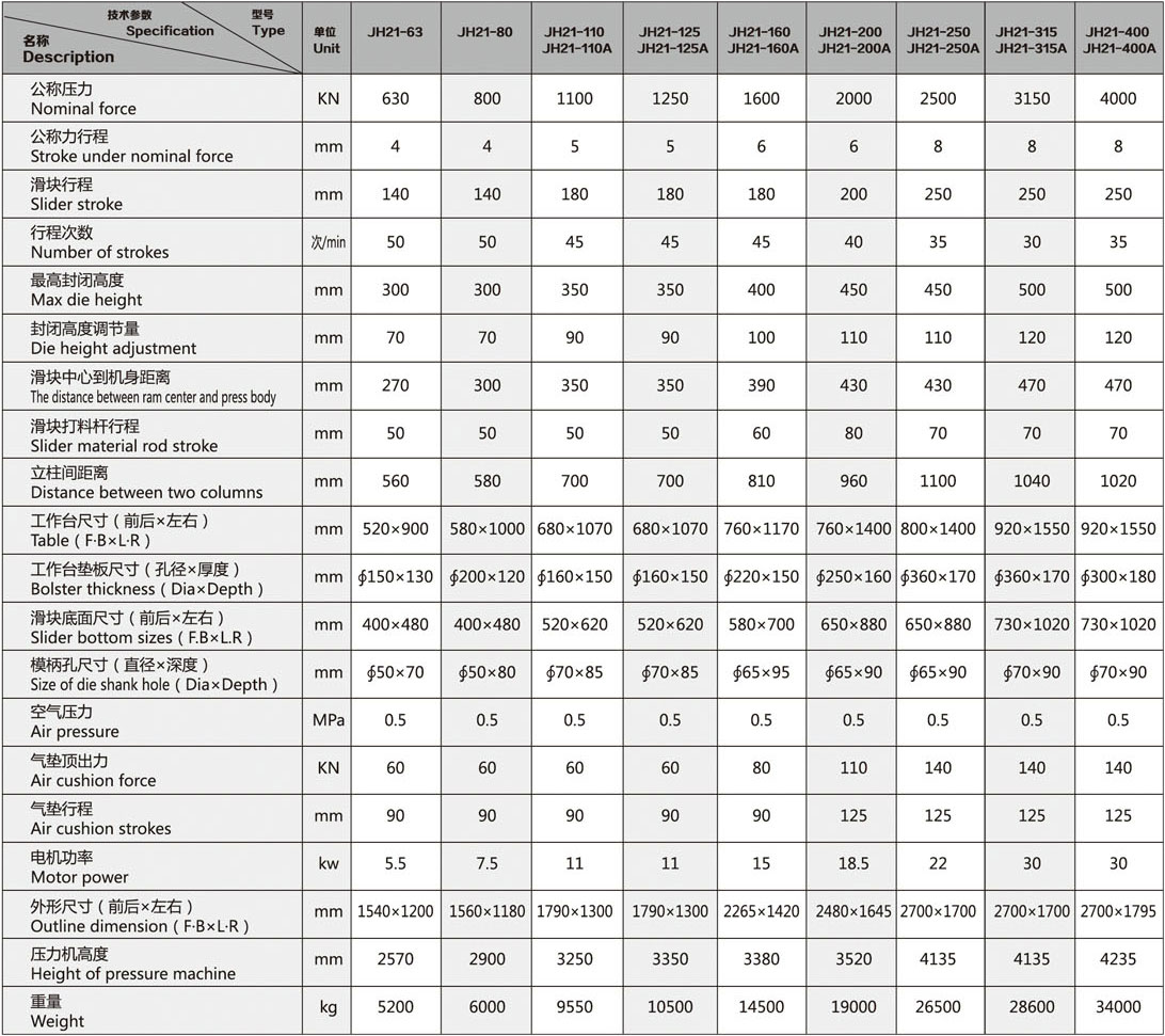 JH21-160/200/250開(kāi)式固定臺(tái)壓力機(jī)